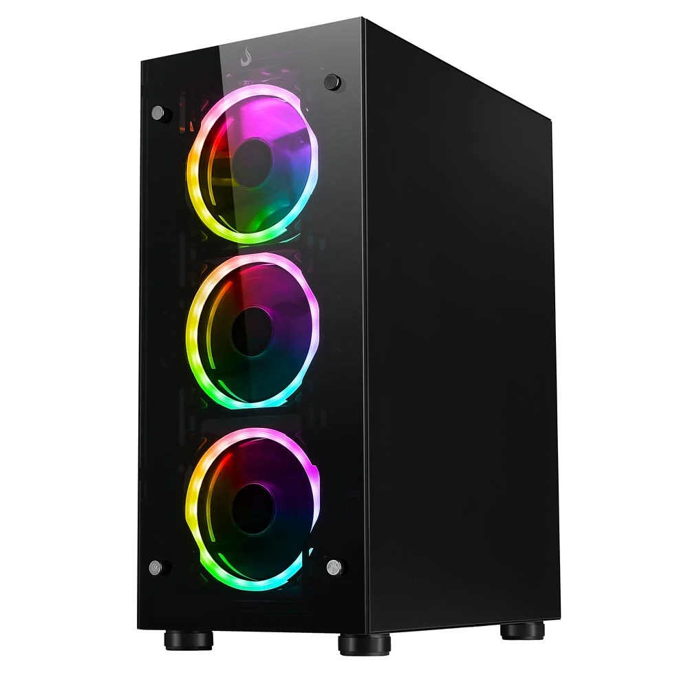 Gabinete para PC Gamer Rise com design moderno e 3 fans RGB para um visual incrível.